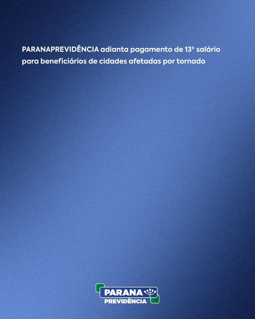 PARANAPREVIDÊNCIA adianta pagamento de 13º salário para beneficiários de cidades afetadas por tornado 13/11/2025 - 09:18