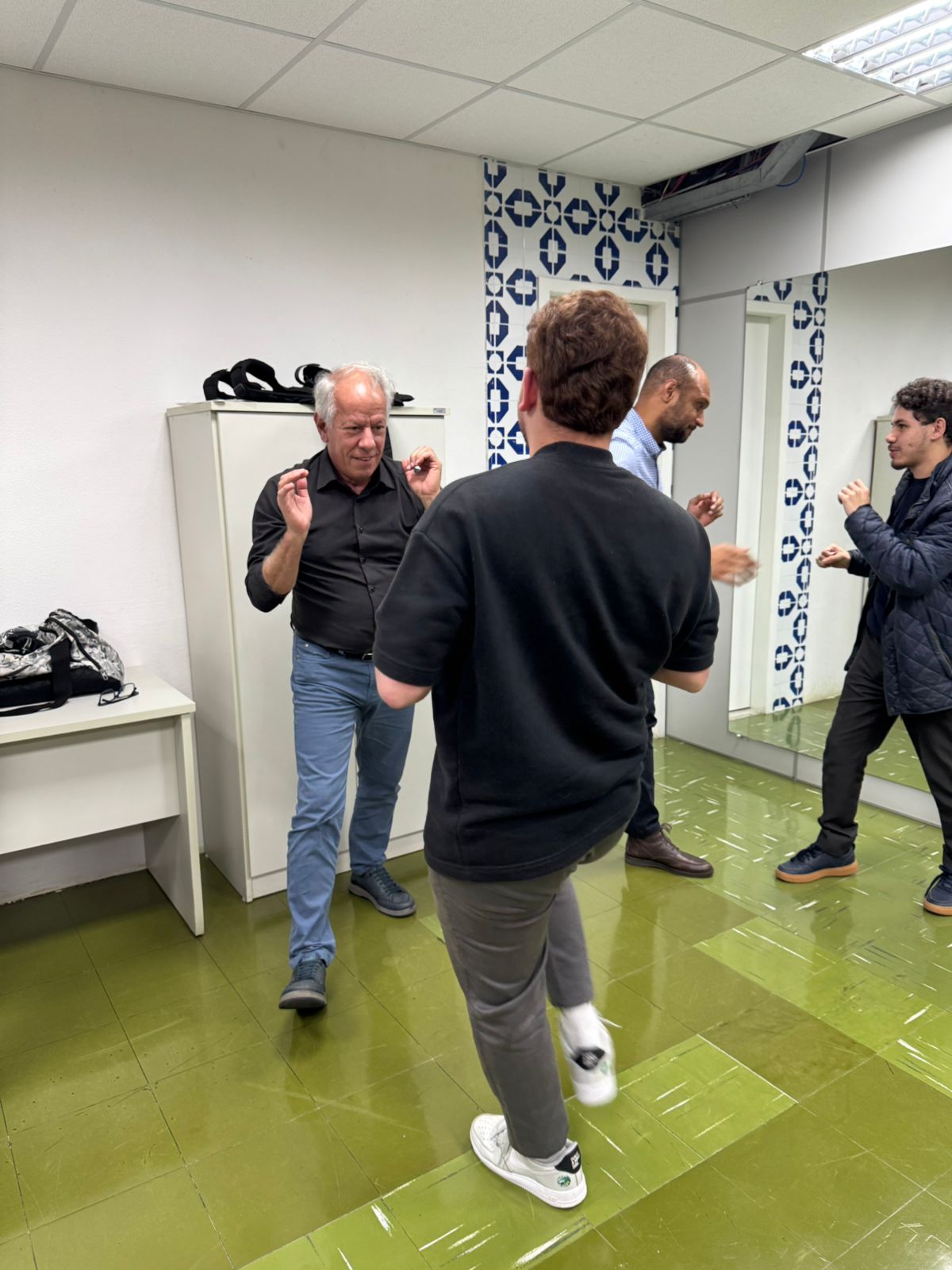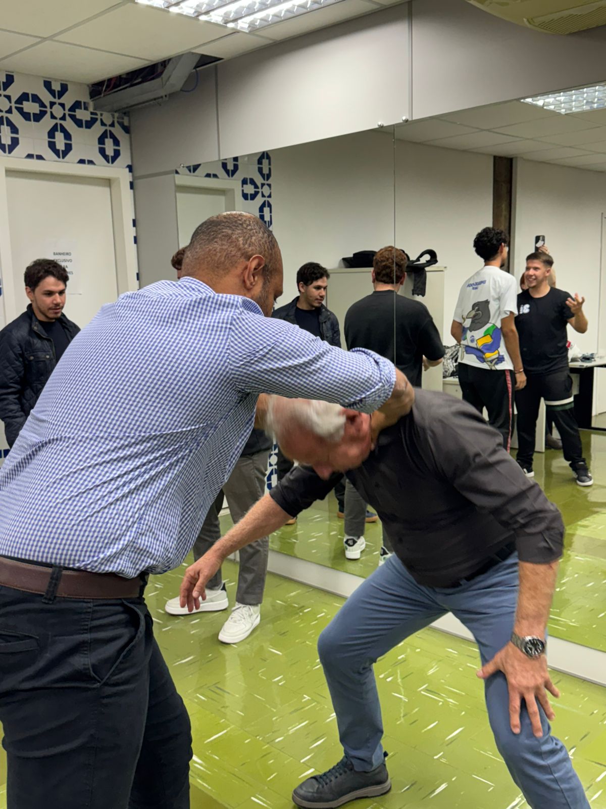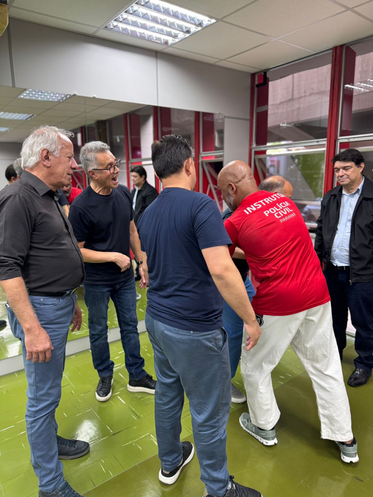 À tarde, o treinamento seguiu com a participação do público masculino. A instrução ficou a cargo de Ronald Agner, Agente de Polícia Judiciária da PCPR. Agner, que é Faixa Preta de Karatê e Jiu-Jitsu (grau 4), atua na Polícia Civil há 13 anos e é professor da disciplina de Defesa Pessoal na Escola Superior de Polícia Civil do Paraná.